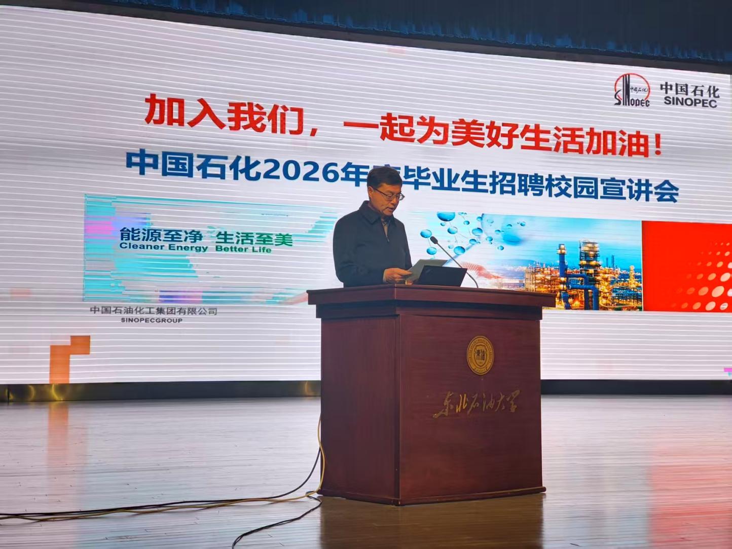 于长青代表学校向中石化集团的到来致以诚挚欢迎,他表示东北石油大学深耕能源人才培养数十载,始终以“为国家能源事业输送高素质人才”为己任,与中石化等行业领军央企合作渊源深厚,大批东油学子在油气勘探、炼化生产、新能源研发等岗位发光发热,成为企业发展中坚力量。他鼓励2026届毕业生以本次宣讲为契机,将专业所学与企业需求、国家能源事业发展大局结合,在实干中锤炼本领、实现个人与社会价值统一,期待更多东油学子加入中石化集团共促行业高质量发展。